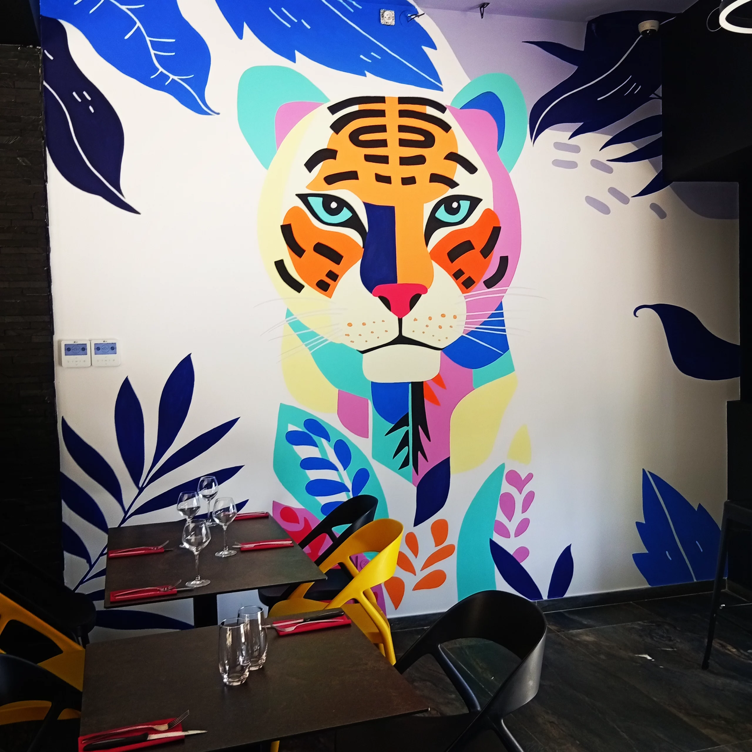 Les fresques artistiques, réalisées à la main, à l’acrylique ou graff, viennent compléter les décors végétaux et renforcer l’identité des lieux. Réalisées sur mesure, elles sont pensées en lien avec les volumes, la lumière, les perspectives et les circulations. Elles permettent d’apporter une signature artistique forte tout en conservant une cohérence globale avec le projet architectural.